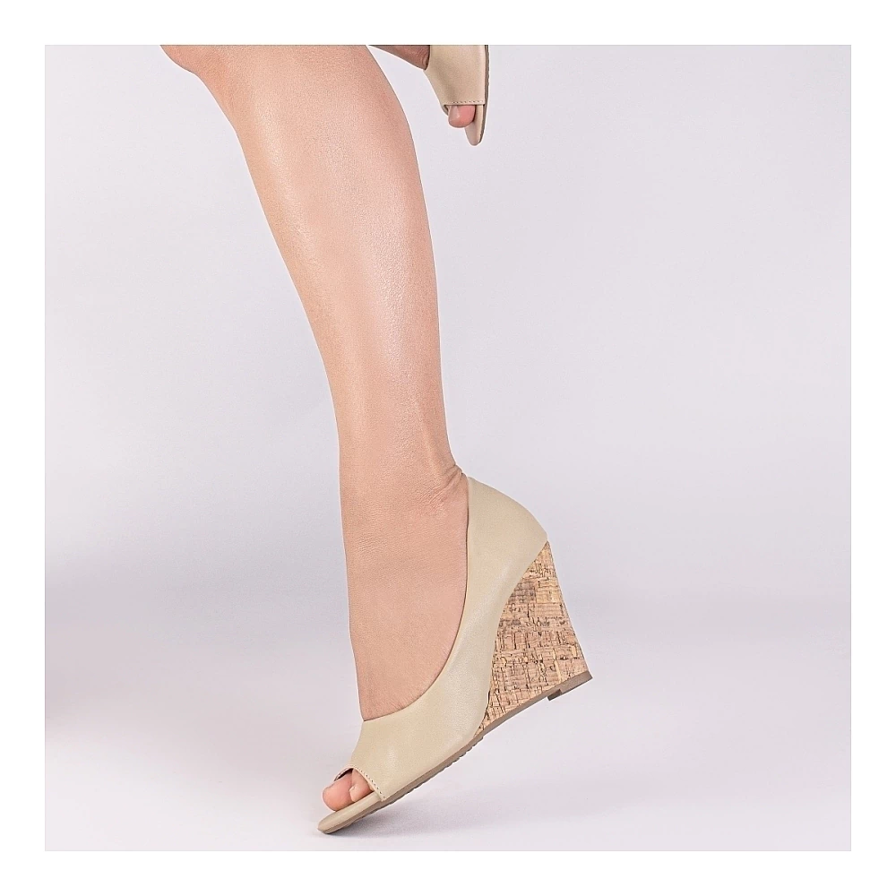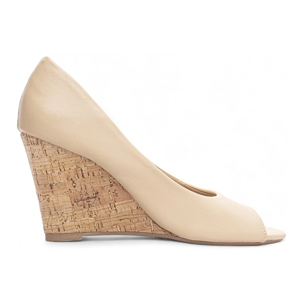 Com salto plataforma em formato de cunha, proporciona mais estabilidade ao caminhar e alonga a silhueta com elegância.
