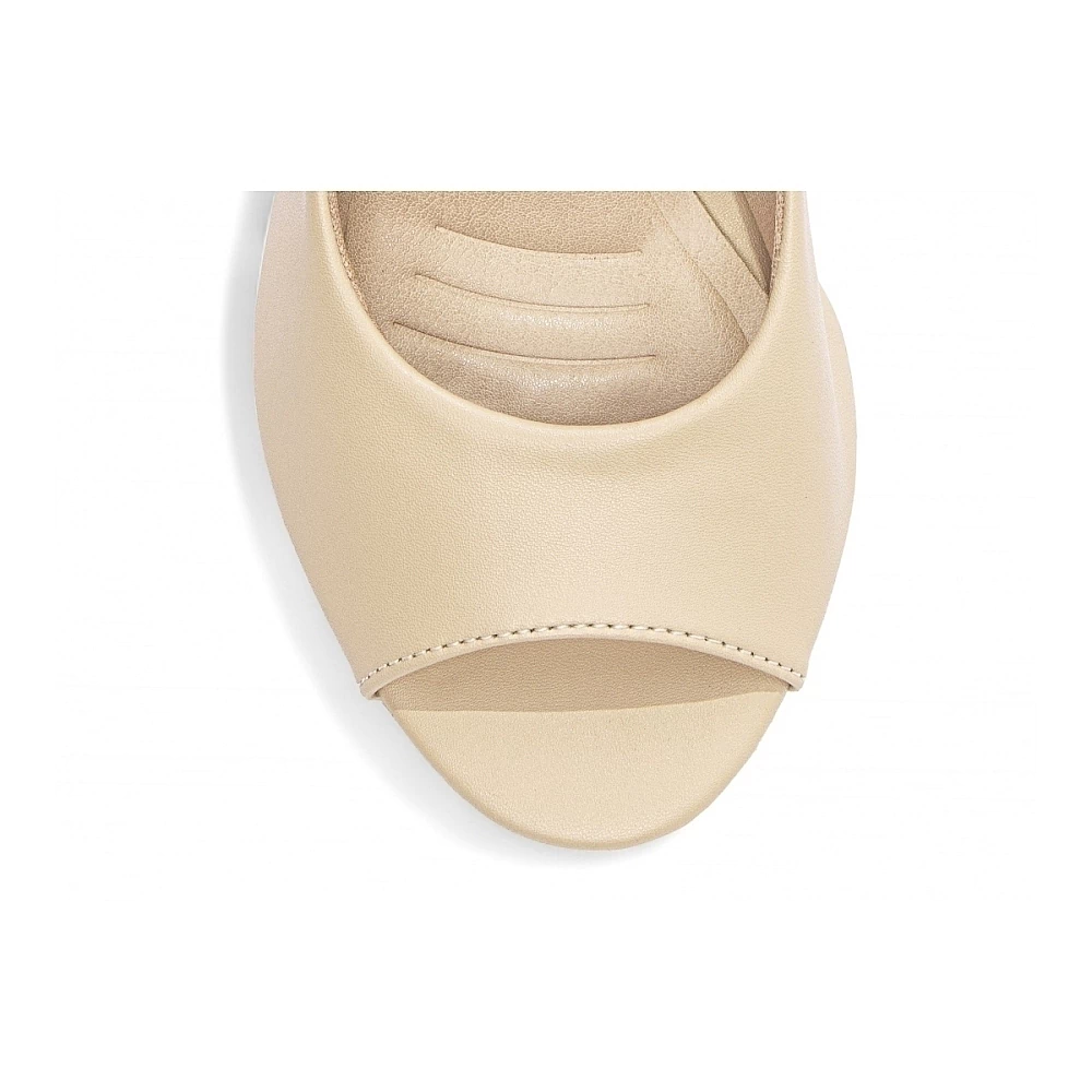 Palmilha: 4 mm de Espessura, Espuma em EVA, Revestida em Napa Bege Claro e Taloneira Bege Claro;