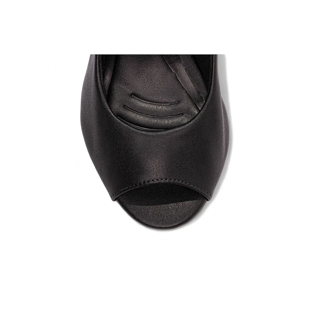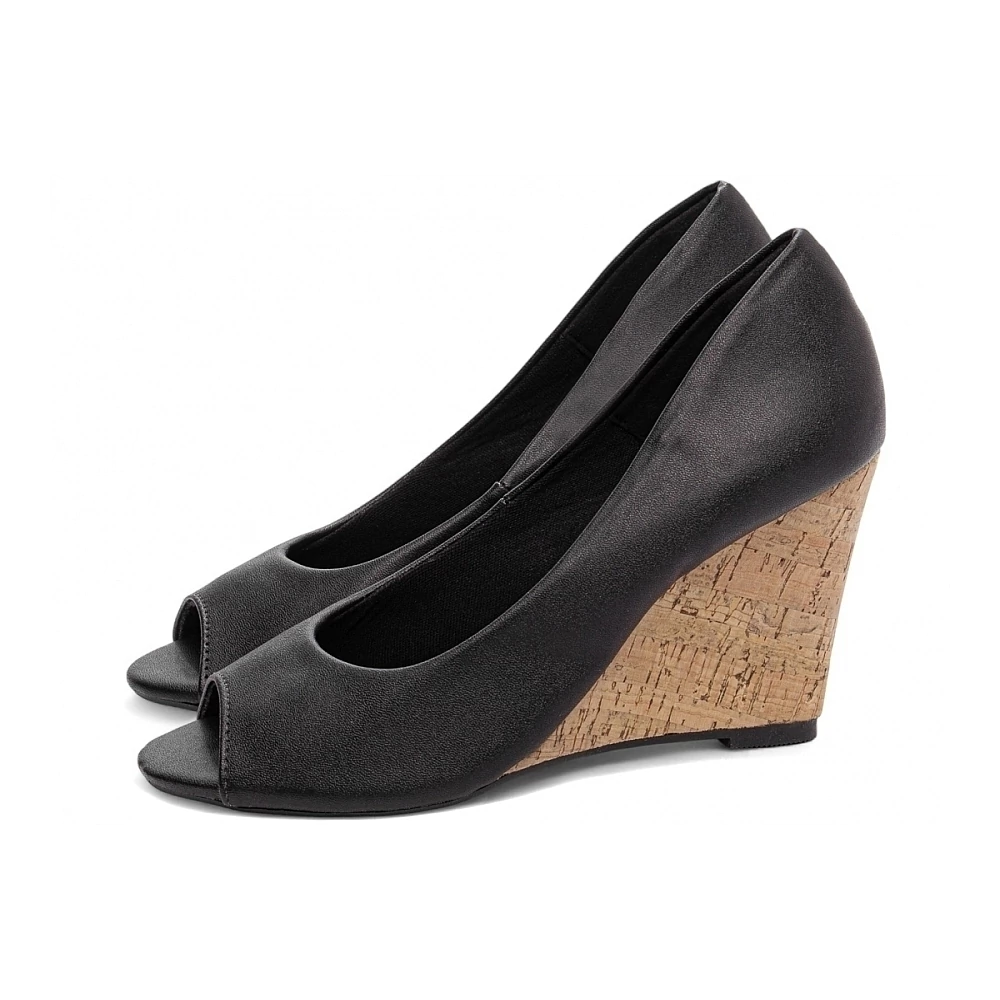 Com salto plataforma em formato de cunha, proporciona mais estabilidade ao caminhar e alonga a silhueta com elegância.