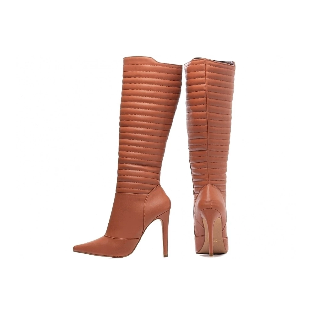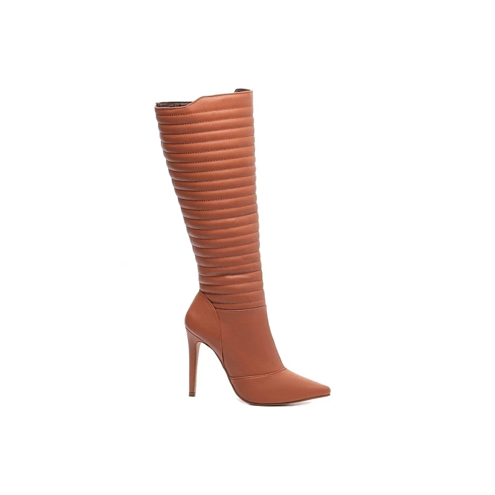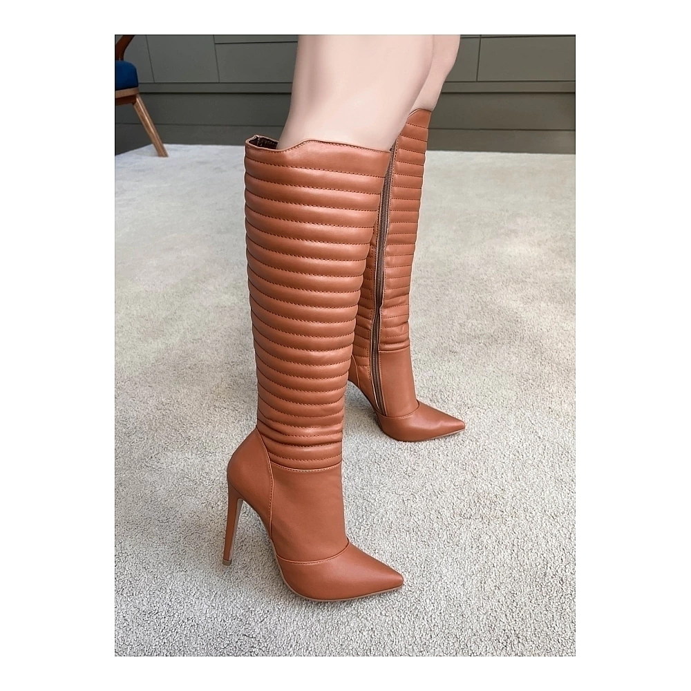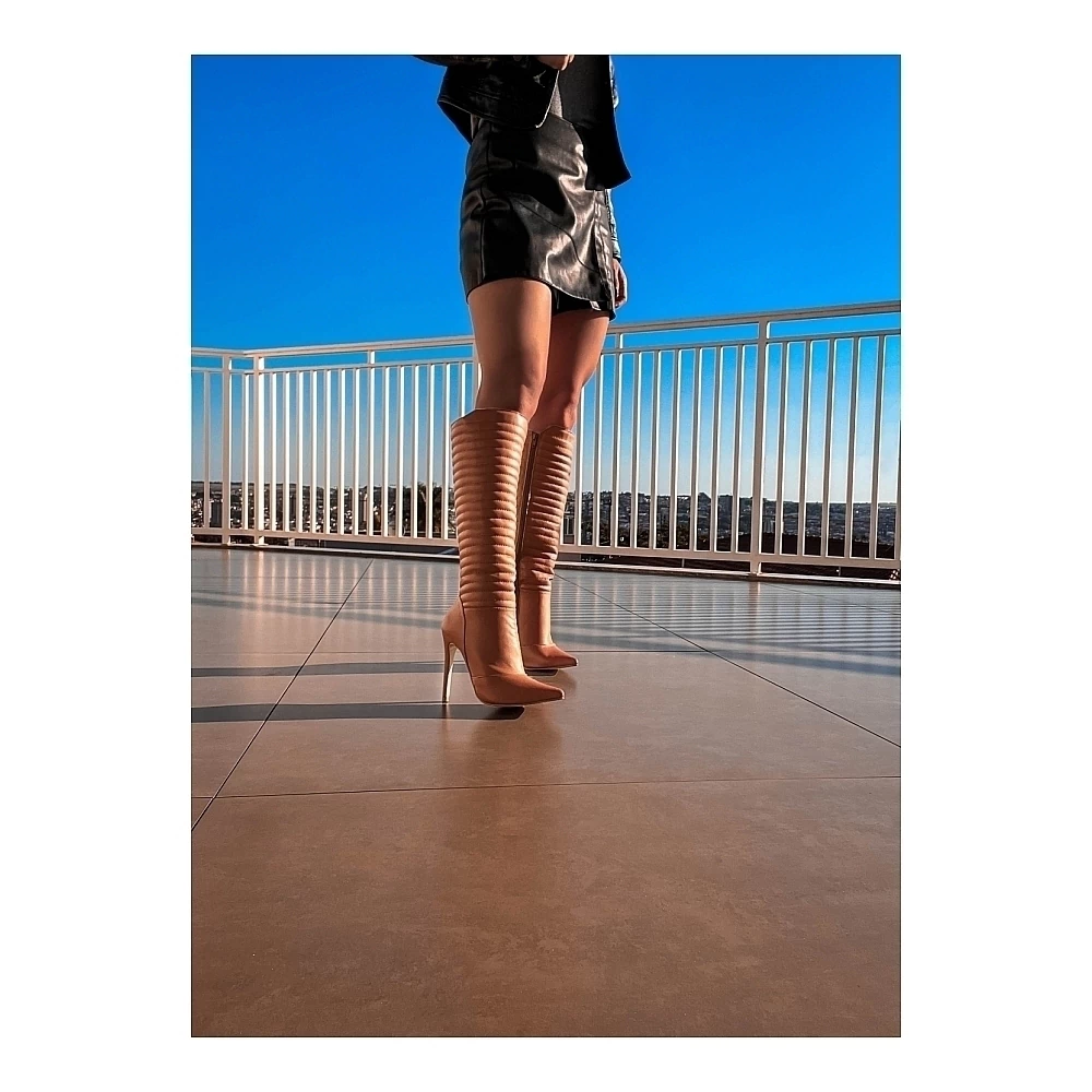Com design moderno e sofisticado, o bico fino alonga a silhueta enquanto o salto 12 cm traz imponência e estilo. O cano alto valoriza as pernas e garante um visual marcante em qualquer produção.