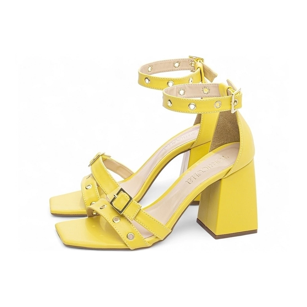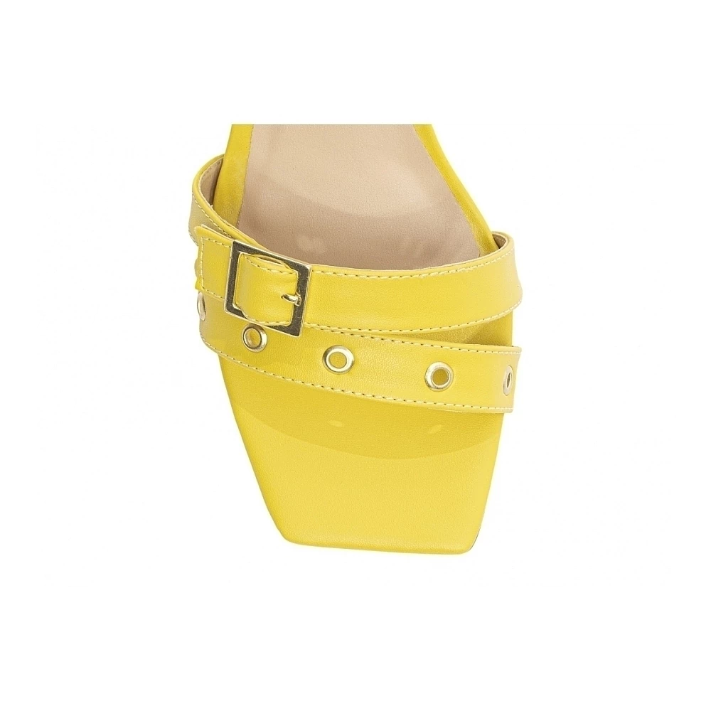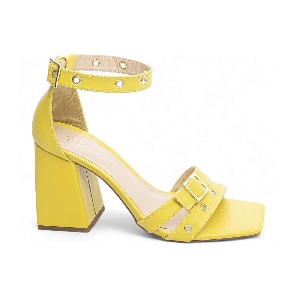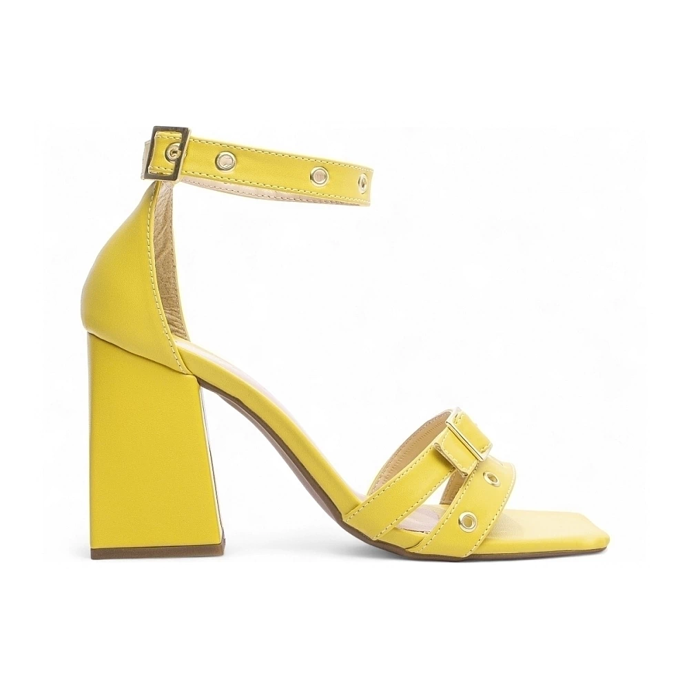 Salto: Grosso com 9 cm de Altura Revestido em Napa Amarelo;