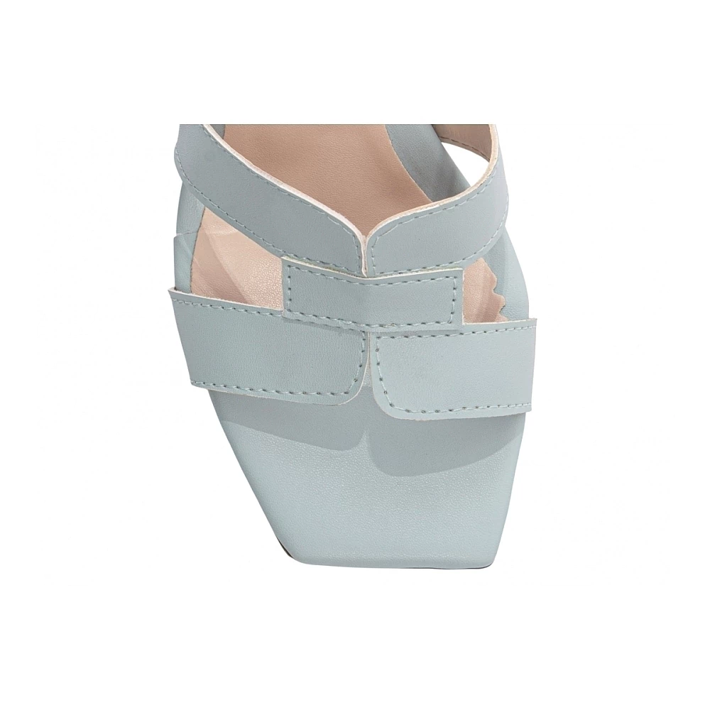 Salto: Grosso com 7 cm de Altura Revestido em Napa Azul;