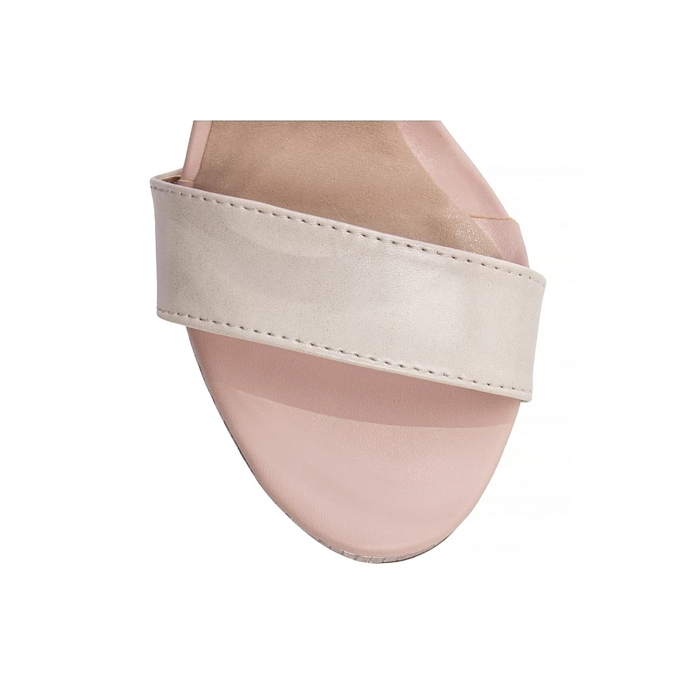 Palmilha: 8 mm de Espessura, Espuma em EVA, Revestida em Napa Rosa e Taloneira Napa Bege;