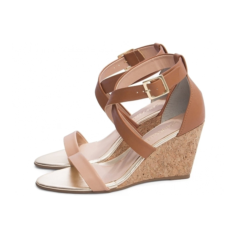 Com salto plataforma em formato de cunha, proporciona mais estabilidade ao caminhar e alonga a silhueta com elegância.