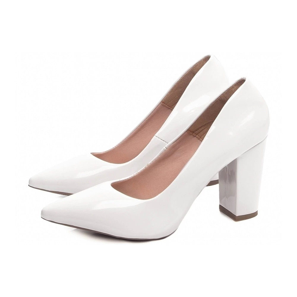 Salto: 8,5 cm de Altura encapado em Verniz Off White;