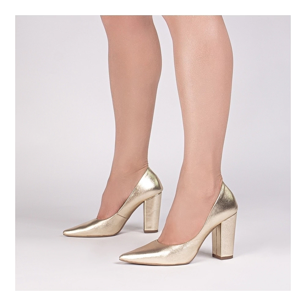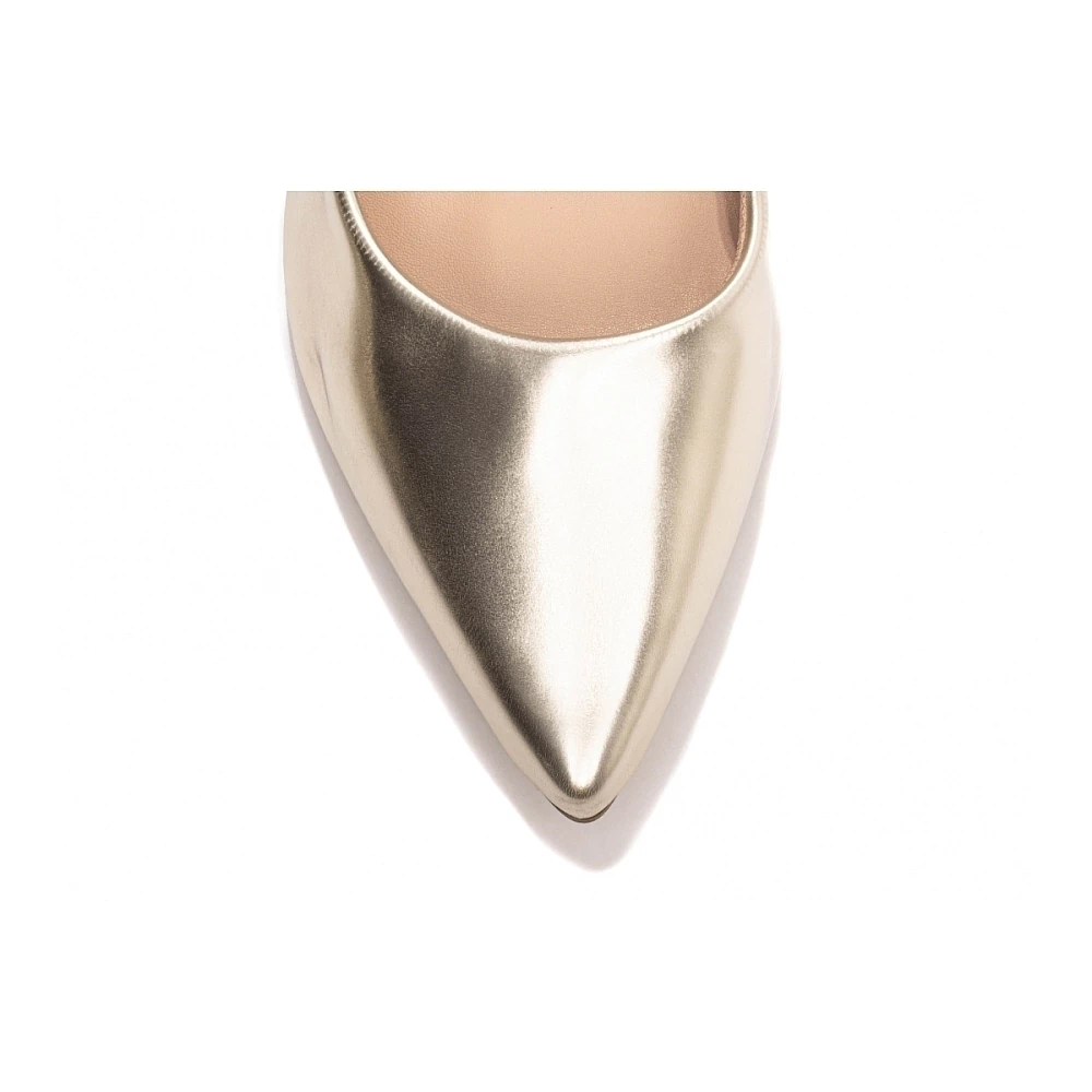 Salto: 9 cm de Altura encapado em Napa Metalizado Ouro Light;