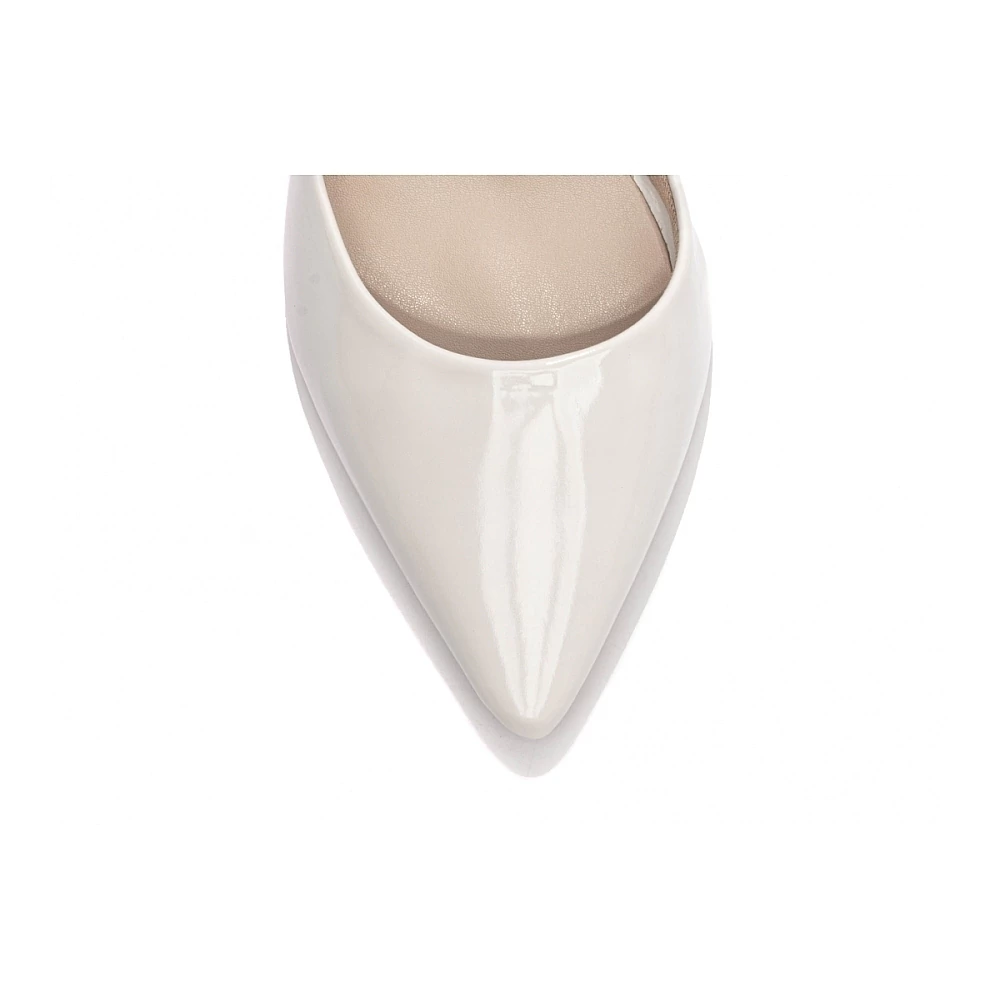 Salto: 9 cm de Altura encapado em Verniz Off White;