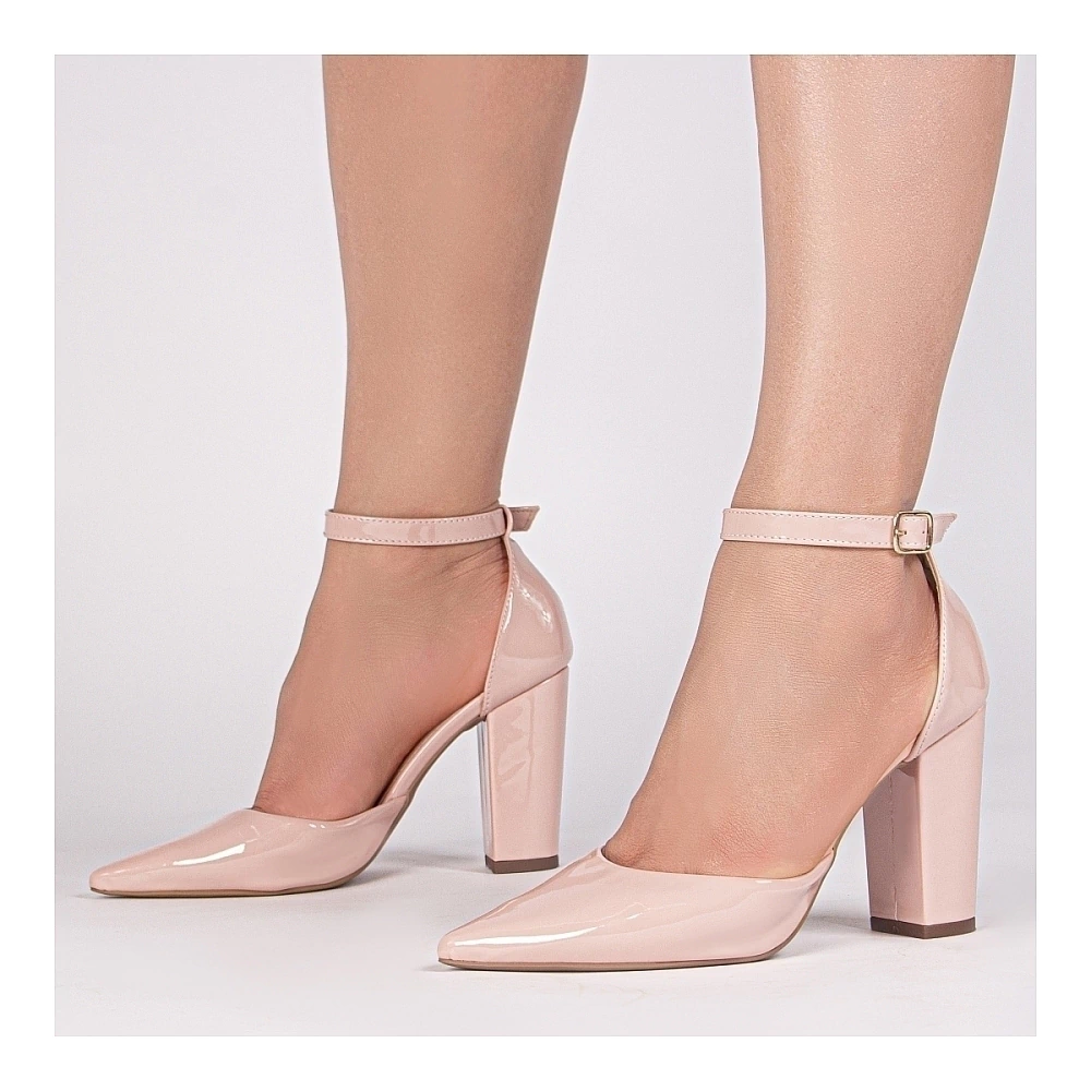 Salto: 9 cm de Altura encapado em Verniz Rose;