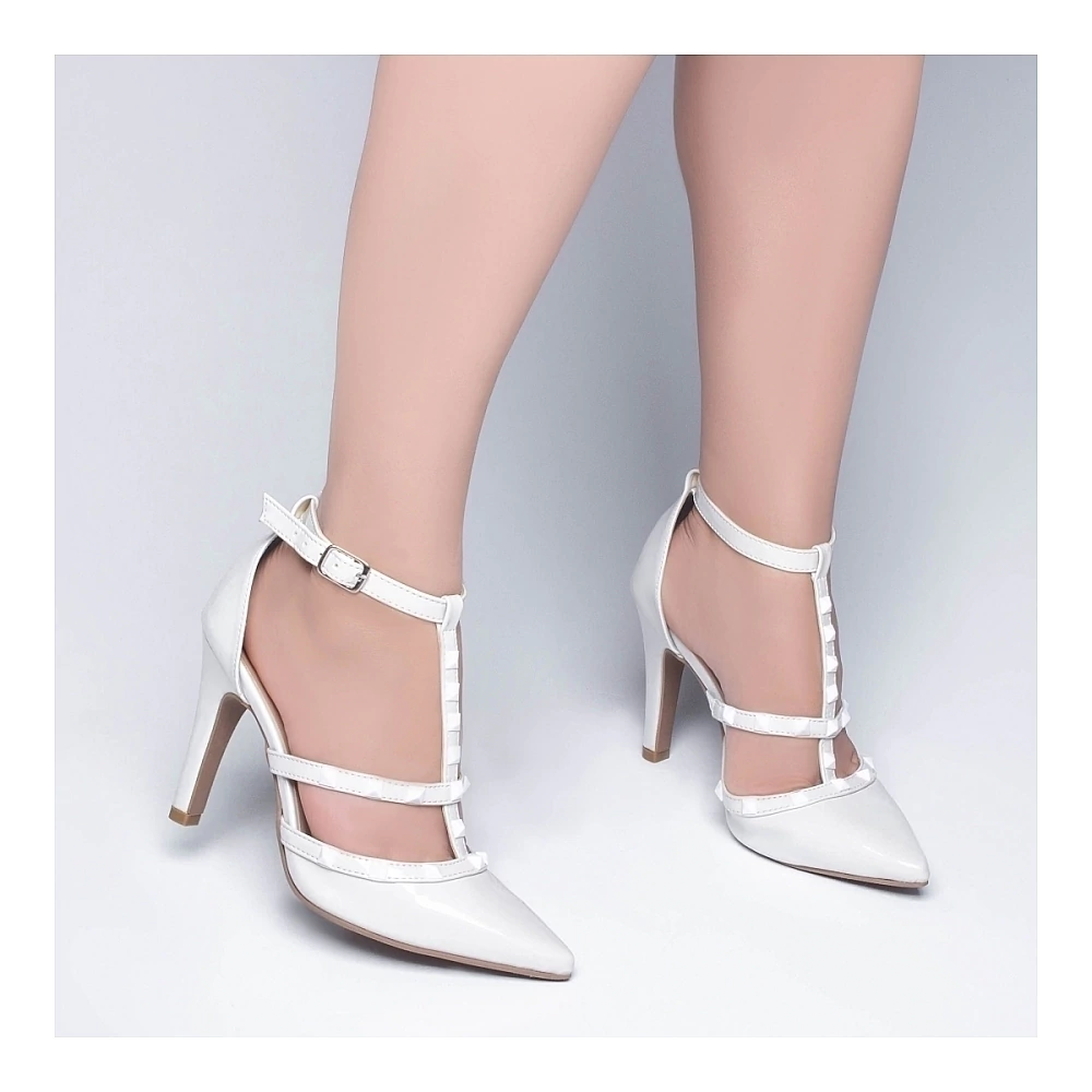 Salto: 9 cm de Altura Revestido em Verniz Off White;