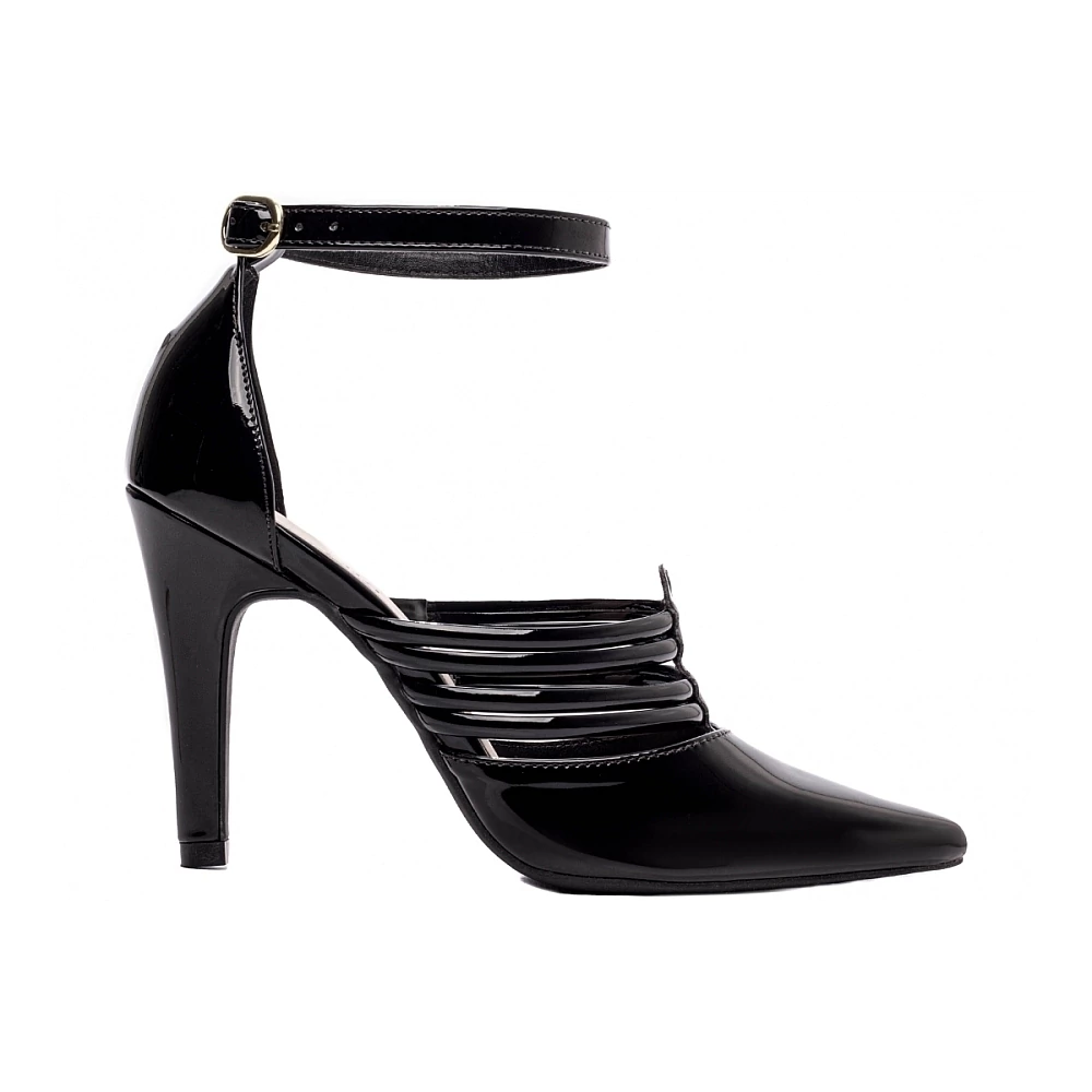 Salto: 9 cm de Altura Revestido em Verniz Preto;