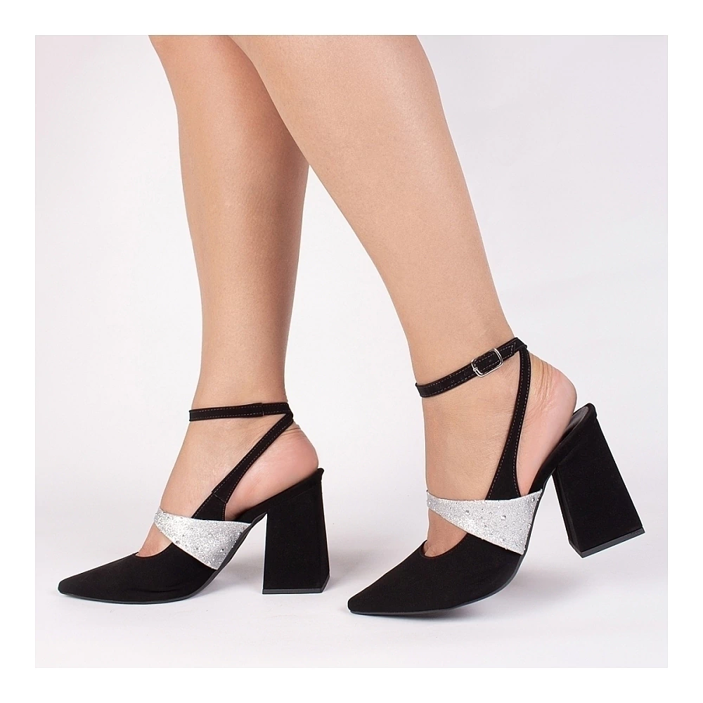 Material: Nobuck Preto / Napa Glitter na cor Prata;