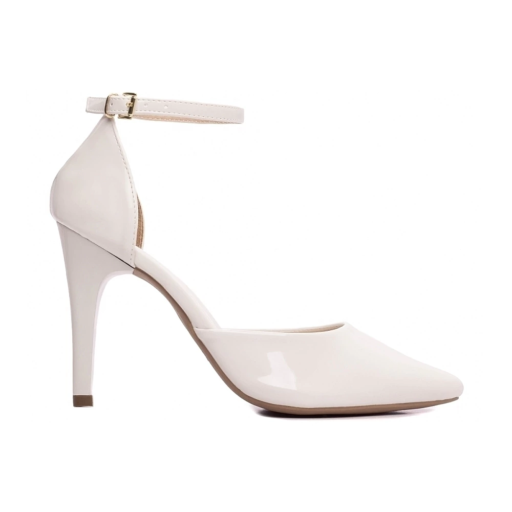 Palmilha: Confort com 8 mm de Espessura, Espuma em EVA, Revestida com Verniz Off White e Taloneira em Verniz Off White;